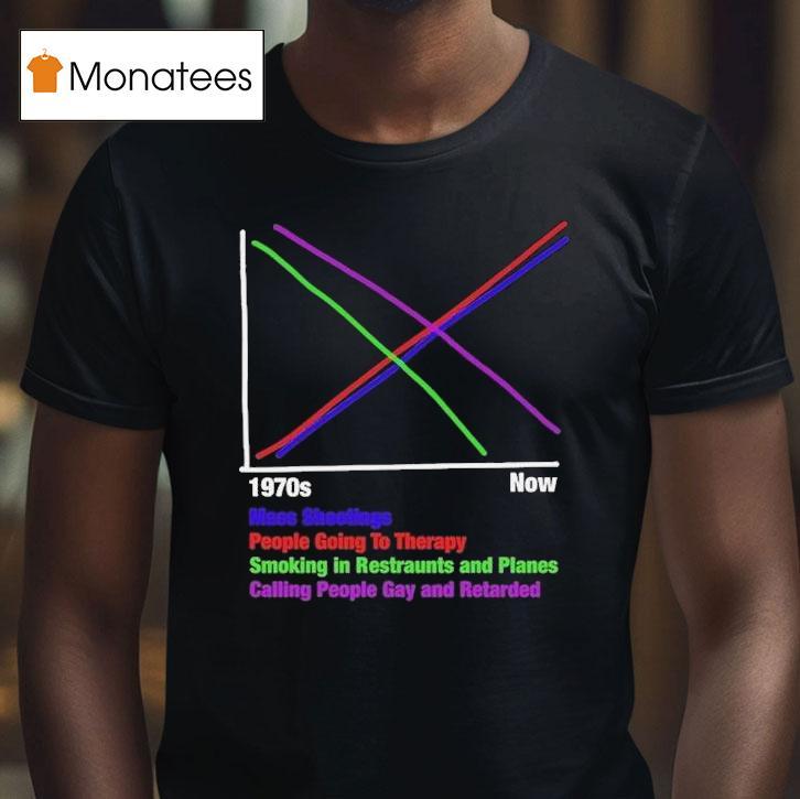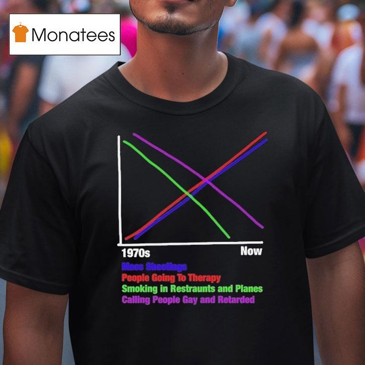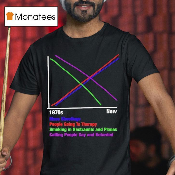 Soft, breathable, and stylish with 1970s Vs Now Mas Shootings People Going To Therapy Smoking In Restaurants And Planes Calling People Gay And Retarded Graph Shirt, the 1970s was a decade marked by violence with an increasing number of mass shootings, limited access to mental health resources, and widespread acceptance of smoking in public places. The use of derogatory terms like “gay” and “retarded” was also prevalent, as seen through the popular trend of wearing graph shirts. How have things changed in present times?