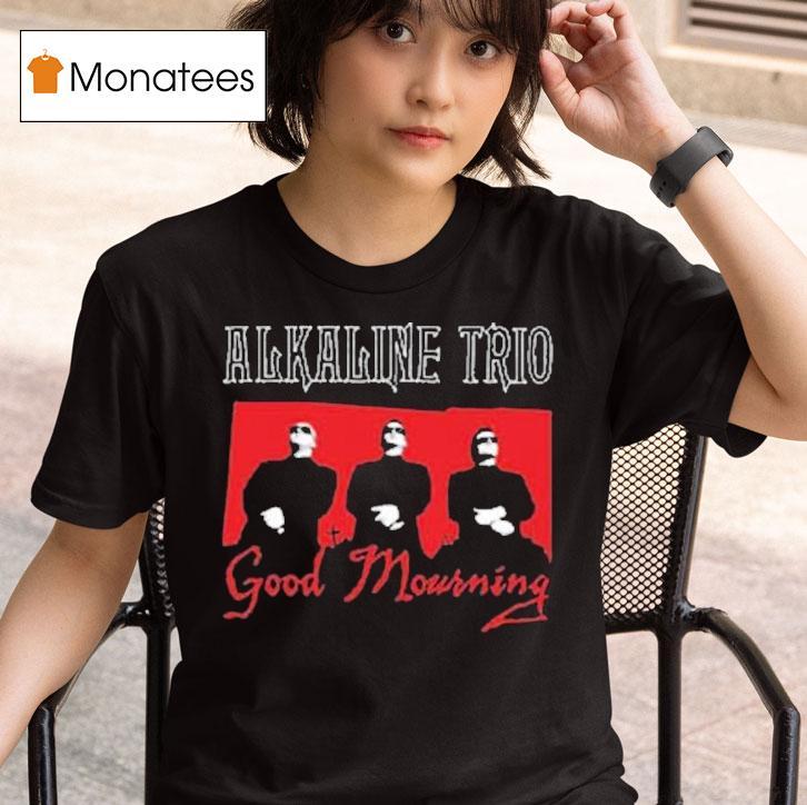Simple style, big impact with Alkaline Trio Good Mourning All On Shirt, alkaline Trio fans, rejoice! The iconic Good Mourning album cover can now be worn proudly on your chest with the new Alkaline Trio Good Mourning All On Shirt. Show your love for the band and this iconic album with this must-have addition to your merch collection.