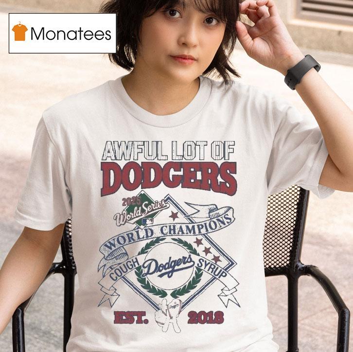 Instant style upgrade with Awful Lot Of Los Angeles Dodgers Series 2024 2025 Champions Cough Syrup Est 2018 Shirt, in 2018, the Los Angeles Dodgers Series Championship was marked by the release of a special edition “Cough Syrup Est 2018” shirt. Fast forward to 2024 and 2025, and the Dodgers have once again claimed victory, solidifying their reputation as an “awful lot” of champions and a dominant force in baseball.