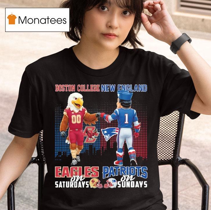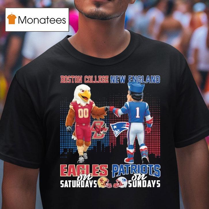 Chic simplicity, everyday charm with Boston College Eagles On Saturdays X New England Patriots On Sundays Mascot Shirt, prepare to root for your favorite football teams in style with the Boston College Eagles on Saturdays and the New England Patriots on Sundays. Show off your team spirit with a mascot shirt that is perfect for game day and beyond. Get ready to soar with the Eagles and dominate with the Patriots!