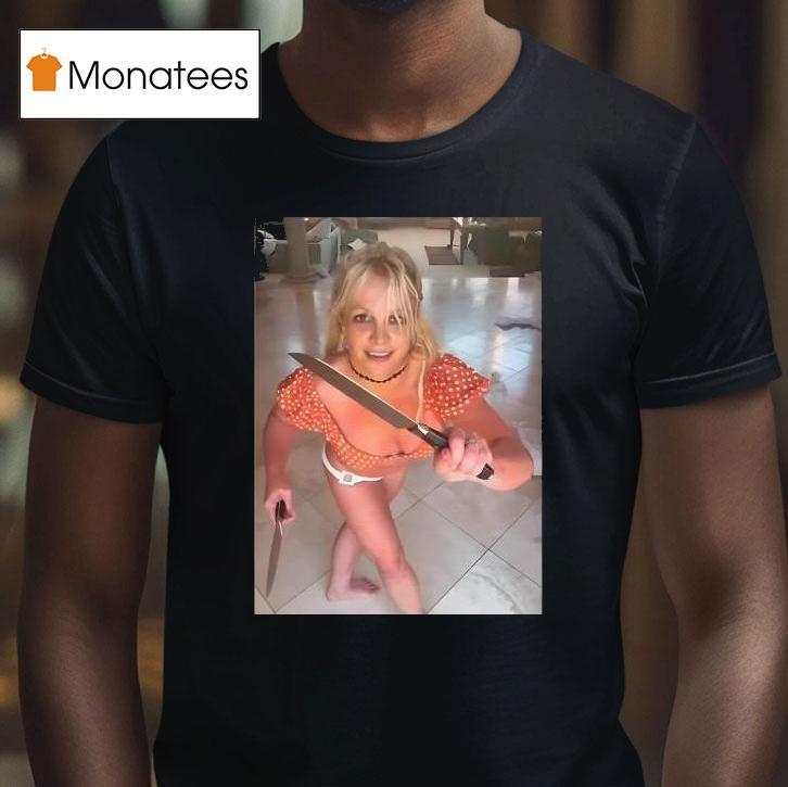 Wardrobe must-have with Britney Spears Dances While Holding Knives Shirt, multi-talented pop icon Britney Spears surprised her fans once again as she took to social media to share a video of her dancing while wearing a daring shirt. The daring top featured Spears holding knives, showcasing her fierce and bold personality. Let’s take a closer look at her latest fashion statement.