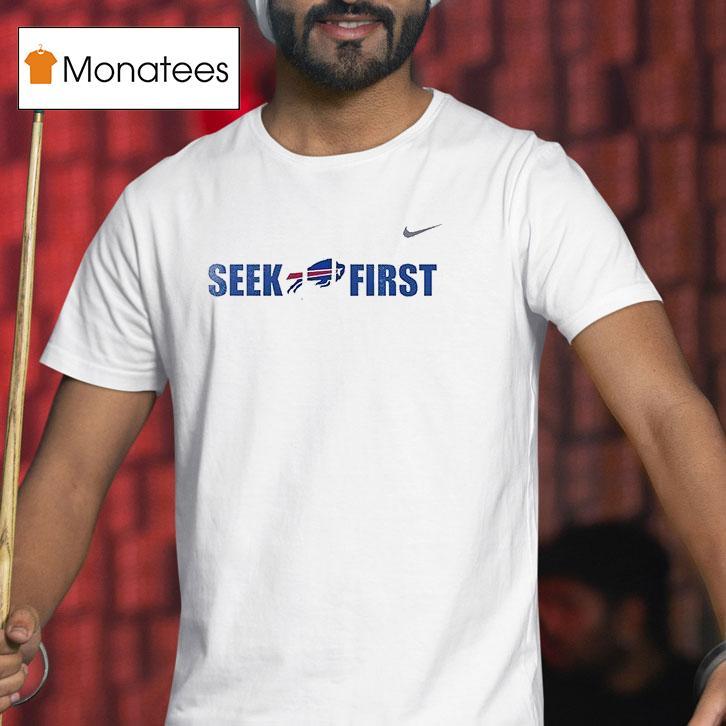 Your fashion canvas with Buffalo Bills Mafia Seek First Logo Shirt, attention all Buffalo Bills fans and members of the legendary Bills Mafia! The time has come to proudly sport the first ever official logo shirt for your beloved team. Show off your support and represent the Bills with pride as they dominate the field. Join the Mafia and get your shirt today!