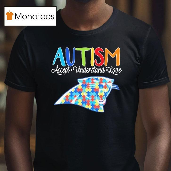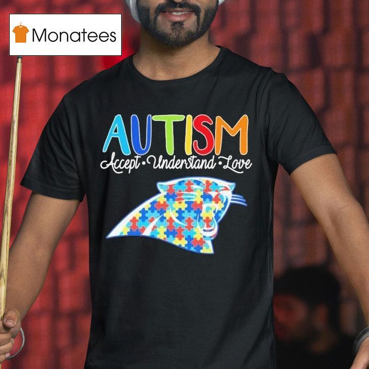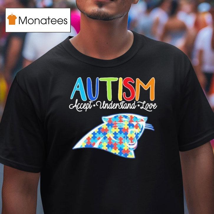Versatile fashion, always with Carolina Panthers Autism Accept Understand Love Shirt, attention all Carolina Panthers fans! Show your support for Autism Acceptance by sporting our exclusive understanding and love shirt. Let’s spread awareness and embrace diversity together, all while representing our beloved team. Get your limited edition Carolina Panthers Autism Accept Understand Love Shirt now.