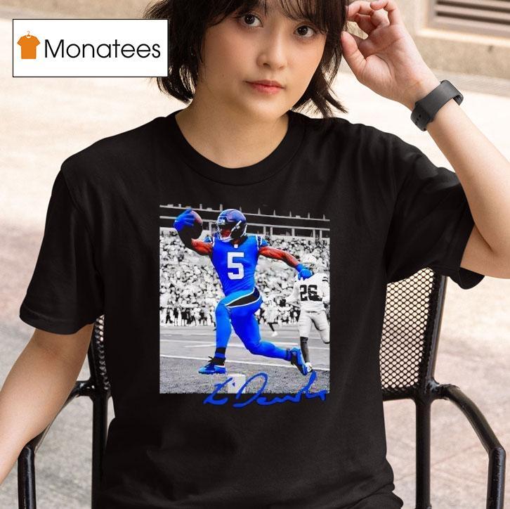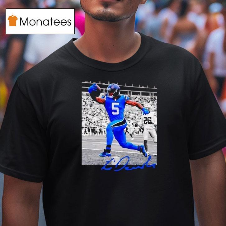 Simple style, big impact with Carolina Panthers Rico Dowdle Black Nfl Flash Features Week 6 Signature Shirt, the Carolina Panthers are ready to take on their opponents in Week 6 with explosive running back Rico Dowdle leading the charge. Show your support for the team with the stunning new black NFL flash features shirt featuring Dowdle’s signature on the back. Let’s go Panthers!