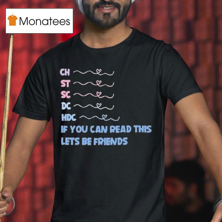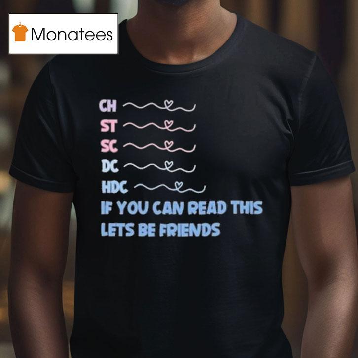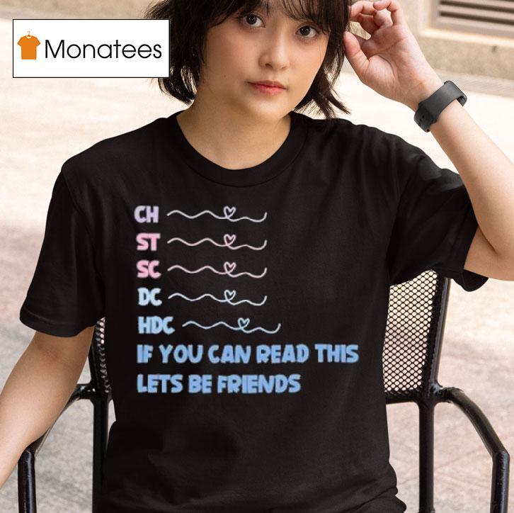 Casual luxury, anytime wear with Ch St Sc Dc Hdc If You Can Read This Lets Be Friends Shirt, looking for a fun and quirky way to show off your crocheting skills? Look no further than the Ch St Sc Dc Hdc If You Can Read This Lets Be Friends Shirt! This creative shirt is perfect for connecting with fellow yarn lovers and showing off your love for all things crochet.