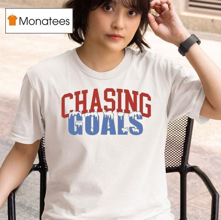 Casual chic, timeless appeal with Chasing Goals Ice Shirt, as the sun sets on the icy fields, a determined figure can be seen sprinting towards the goal, sporting a crisp white shirt with the words “Chasing Goals” emblazoned across the chest. With each step, they are one step closer to achieving their dreams.