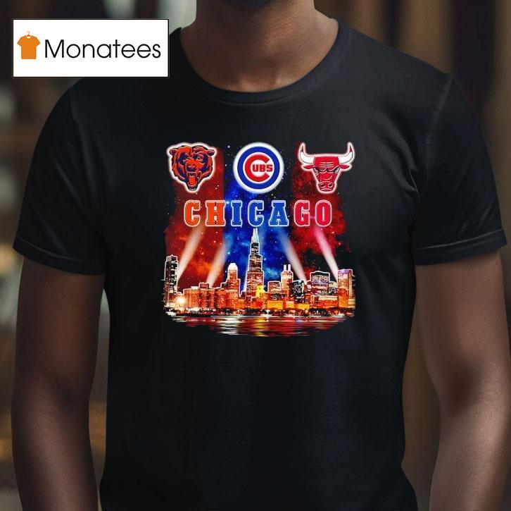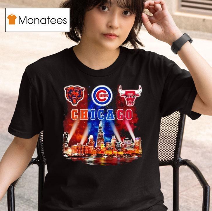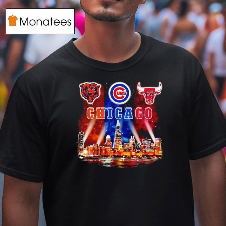Effortless fashion update with Chicago Bears And Chicago Cubs And Chicago Bulls Logo Skyline Shirt, “Show off your Windy City pride with our exclusive Chicago Bears, Chicago Cubs, and Chicago Bulls logo skyline shirt. Representing the city’s beloved sports teams and iconic skyline, this shirt is a must-have for all true Chicago fans. Get yours now and elevate your game day style!”