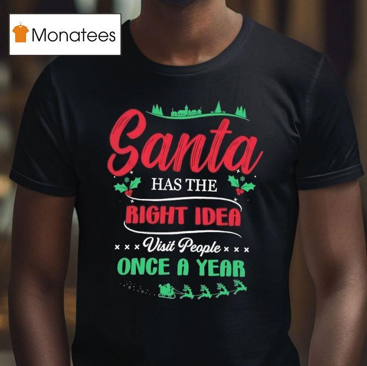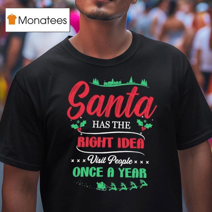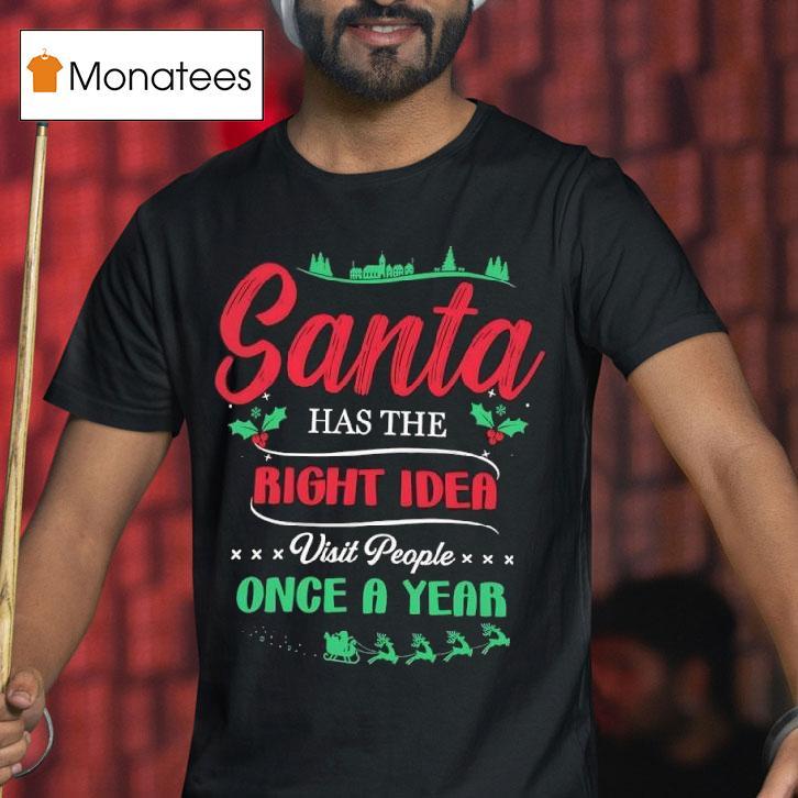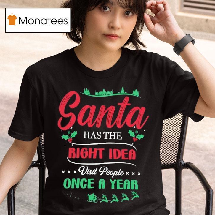 Style that stands out with Christmas Santa Has The Right Idea, Visit People Once A Year Shirt, get ready to spread some holiday cheer with our festive “Christmas Santa Has The Right Idea, Visit People Once A Year” shirt. Perfect for embracing the joy of the season, this shirt is a cheerful reminder to make the most of your yearly visits with loved ones.