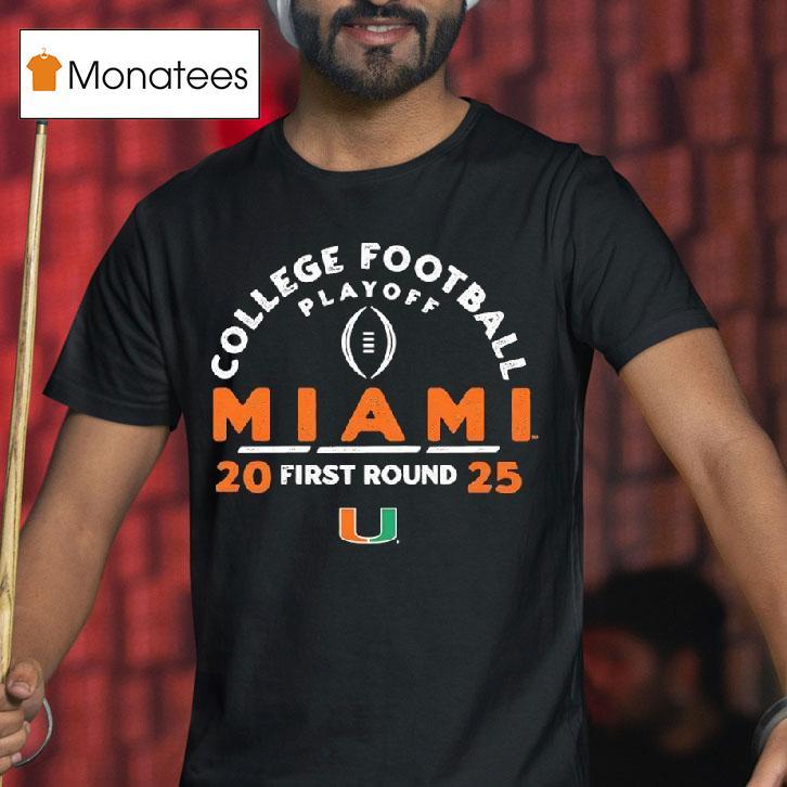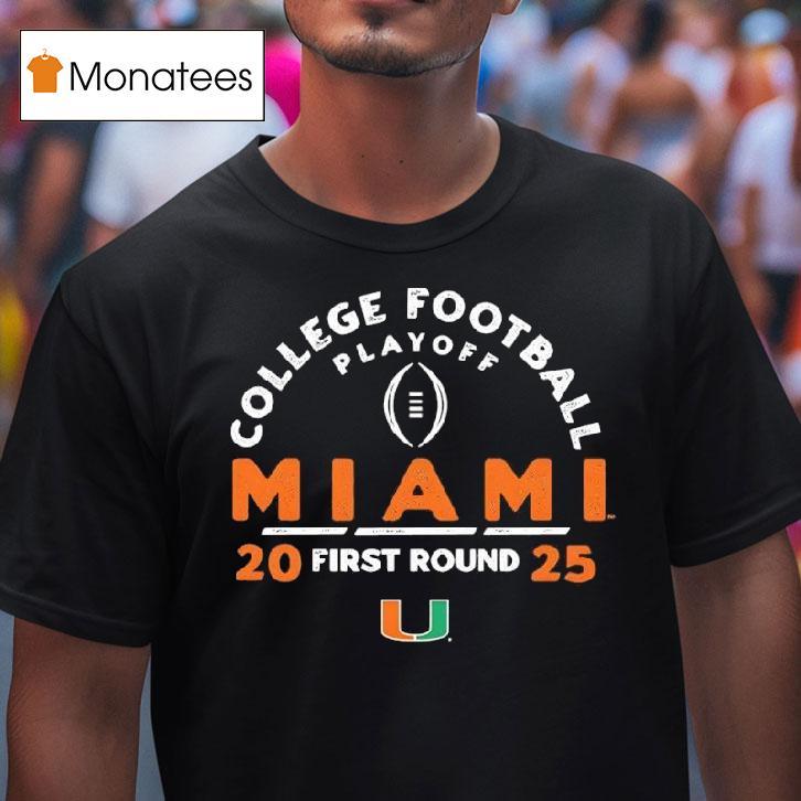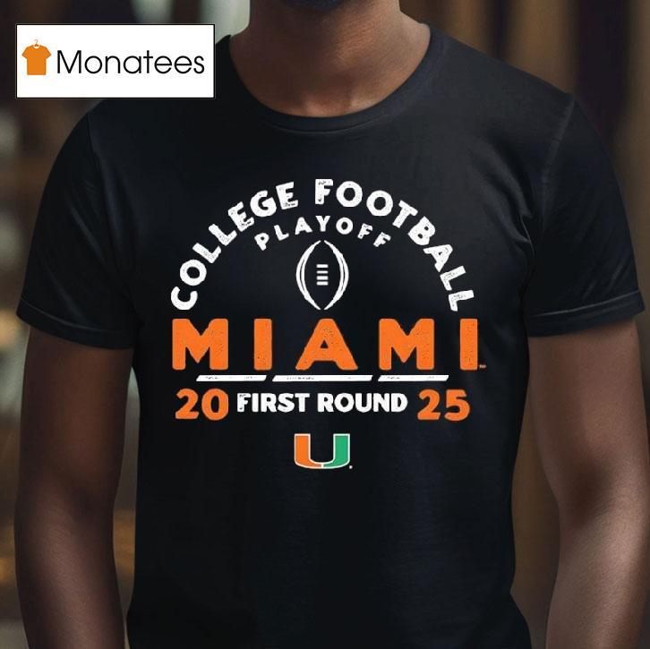 Wearable confidence booster with College Football Playoff 2025 First Round Miami Hurricanes Shirt, the year is 2025 and college football fans are gearing up for the first round of the highly anticipated College Football Playoff. One team, the Miami Hurricanes, has caught everyone’s attention with their brand new, bold and stylish shirt that’s sure to make a statement on and off the field.