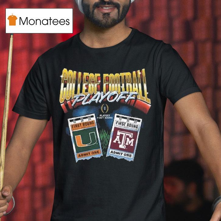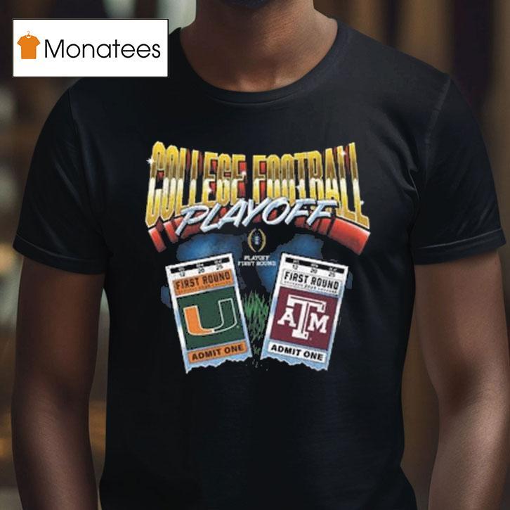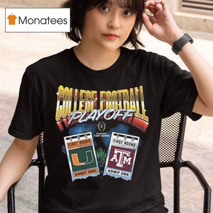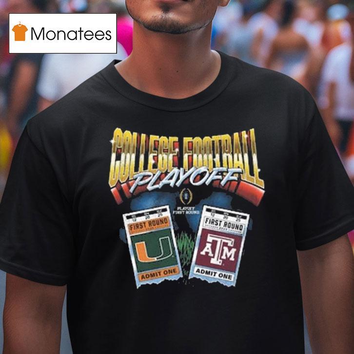 Classic look, contemporary feel with College Football Playoff 2025 First Round Texas Am Aggies Vs Miami Hurricanes Matchup Ticket Shirt, get ready for an epic showdown as the College Football Playoff returns in 2025 for the first round matchup between the Texas A&M Aggies and the Miami Hurricanes. Show your team pride and secure your spot in the stands with the must-have ticket shirt for this highly anticipated game.