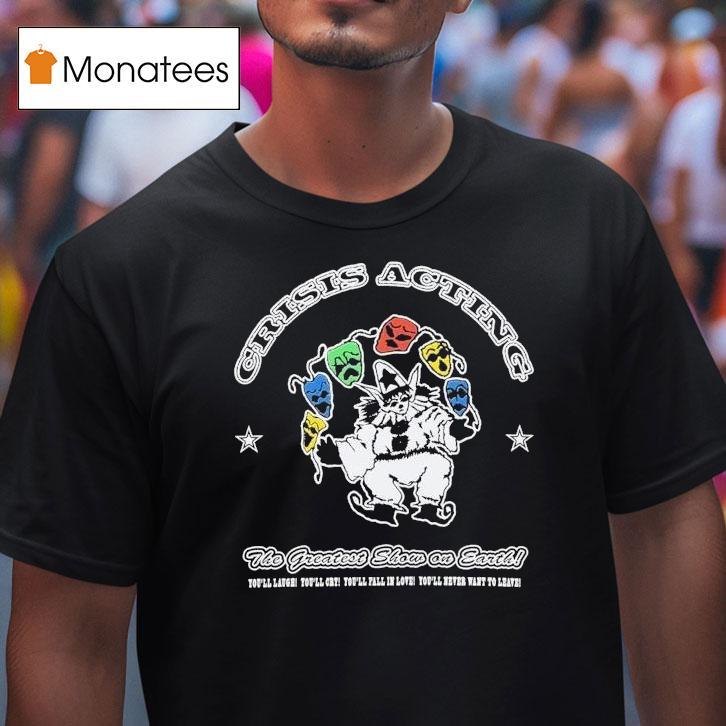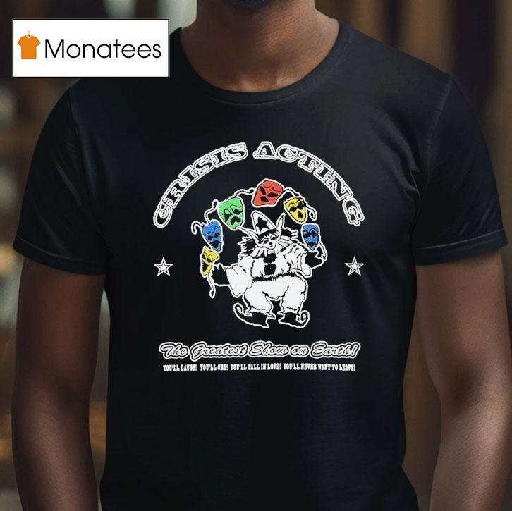 Casual sophistication with Crisis Acting X Nts The Greatest Show On Earth You’ll Laugh You’ll Cry You’ll Fall In Love You’ll Never Want To Leave Clown Shirt, step right up, ladies and gentlemen, and prepare to be entertained like never before. The world-renowned troupe of Crisis Acting X Nts presents The Greatest Show On Earth, where you’ll experience a rollercoaster of emotions. Get your clown shirt ready, because you won’t want to leave this spectacular performance.