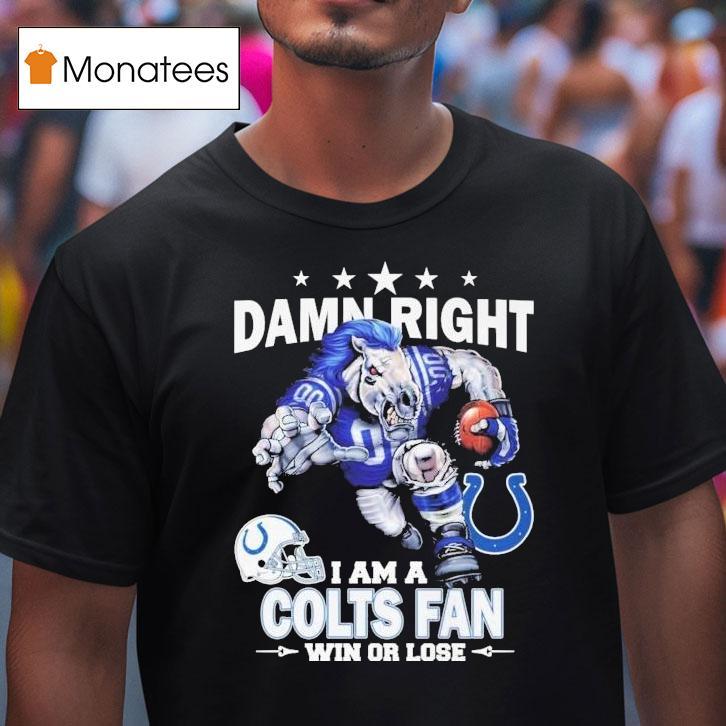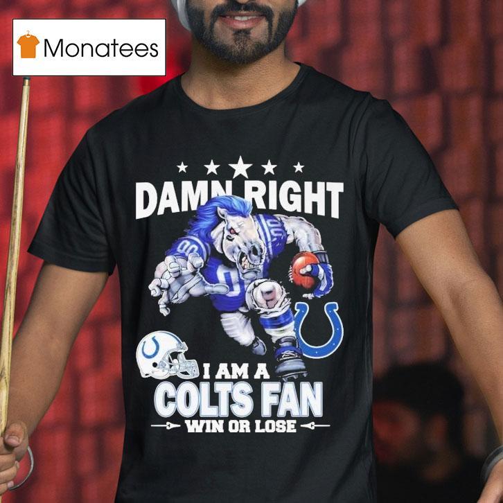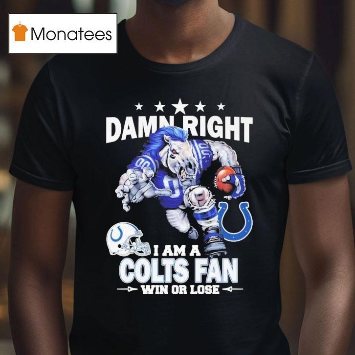 Casual sophistication with Damn Right I Am A Indianapolis Colts Fan Win Or Lose Mascot Shirt, hey there football fans! Are you a die-hard supporter of the Indianapolis Colts? Well, then you know the true meaning of loyalty. And what better way to show it than with this “Damn Right I Am A Indianapolis Colts Fan Win Or Lose Mascot Shirt.” Let’s rock our love for the Colts together!