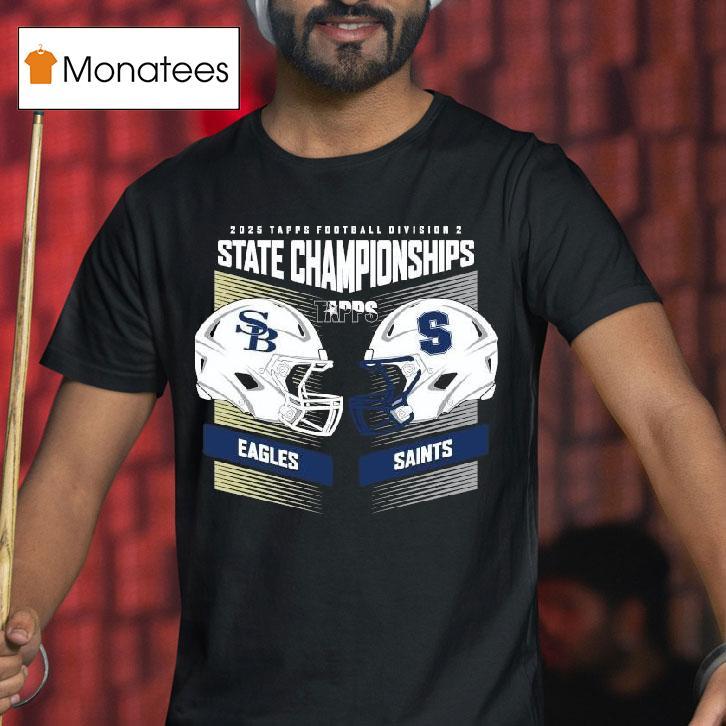 Simple sophistication, all day with Eagles Vs Saints 2025 Tapps Football State Championships H2h Div 2 Shirt, welcome to the highly anticipated 2025 Tapps Football State Championships, where the Eagles and Saints will go head-to-head for the ultimate glory. This Div 2 matchup promises to be an intense battle as both teams fight for the coveted title. Let’s see who will come out on top and claim the championship shirt.