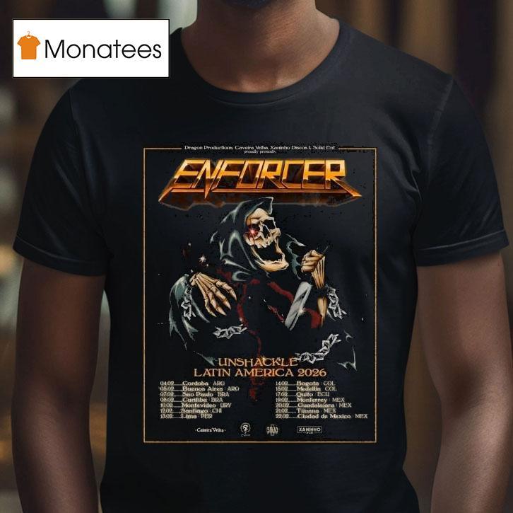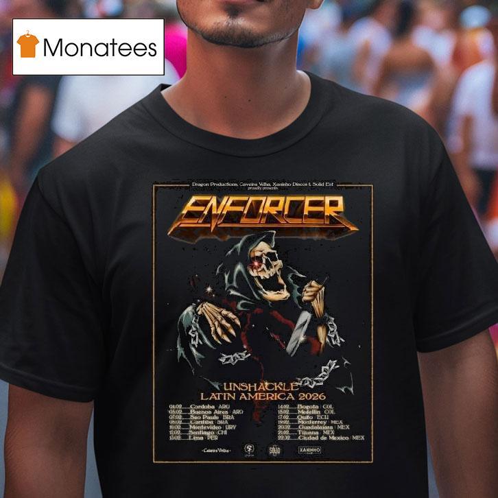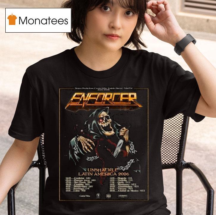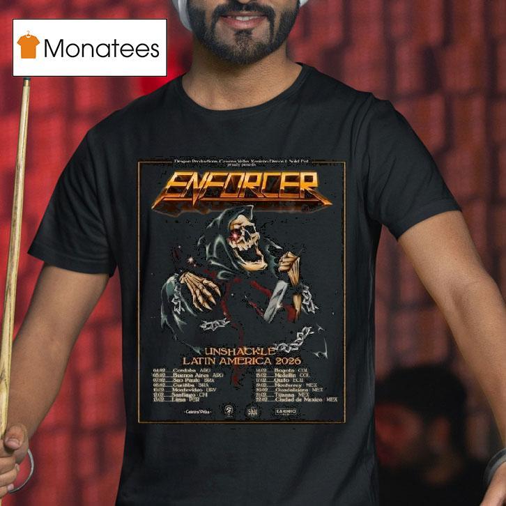 Everyday luxury, casual charm with Enforcer Unshackle Latin America 2026 Tour Shirt, gear up for the ultimate tour experience as we introduce the Enforcer Unshackle Latin America 2026 Tour Shirt. Showcasing bold designs and superior quality, this shirt will take you on a journey through the vibrant and diverse cultures of Latin America. Join the movement and be an enforcer of freedom!
