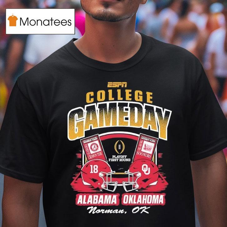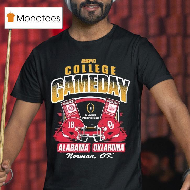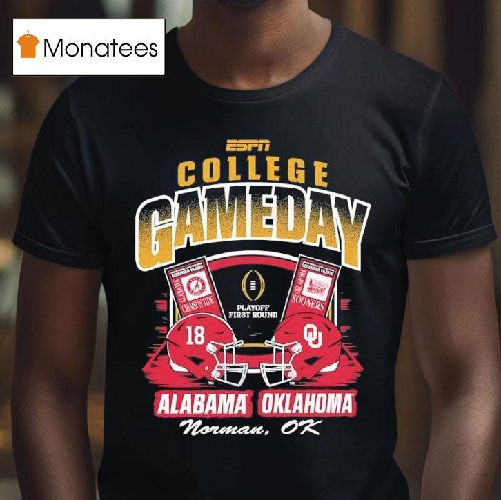 Simple yet versatile fashion with Espn College Gameday Alabama Vs. Oklahoma In Norman Ok Shirt, “Get ready for an epic clash as ESPN College GameDay heads to Norman, Oklahoma for the highly anticipated matchup between the Alabama Crimson Tide and the Oklahoma Sooners. Show your team pride and gear up with the official ESPN College GameDay Alabama vs. Oklahoma in Norman, OK shirt.”