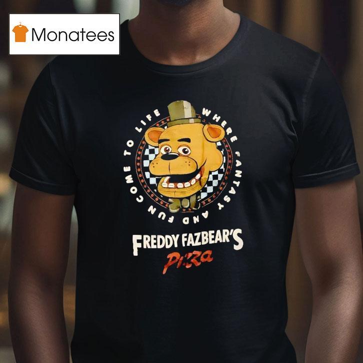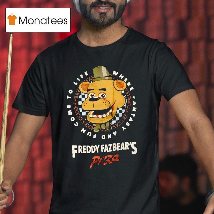 Classic tee, modern comfort with Freddy Fazbear’s Pizza Where Fantasy A On Fun Come To Life Five Nights At Freddy’s Game Shirt, step into the world of Freddy Fazbear’s Pizza where fantasy and fun come to life. The iconic Five Nights at Freddy’s game has captured the hearts of fans with its thrilling gameplay and terrifying animatronics. Adorned with a game shirt, prepare for a night of unforgettable scares and excitement.