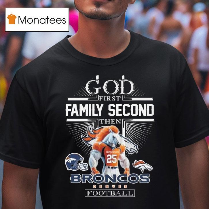 Everyday ease, endless style with God First Family Second Then Denver Broncos Football Mascot 2025 Shirt, god first, family second. These words may seem simple, but they hold great meaning for many individuals. And for die-hard fans of the Denver Broncos football team, they hold even more significance when combined with their beloved mascot on the 2025 shirt. Let’s explore this unique combination further.
