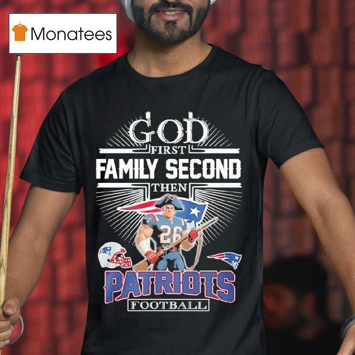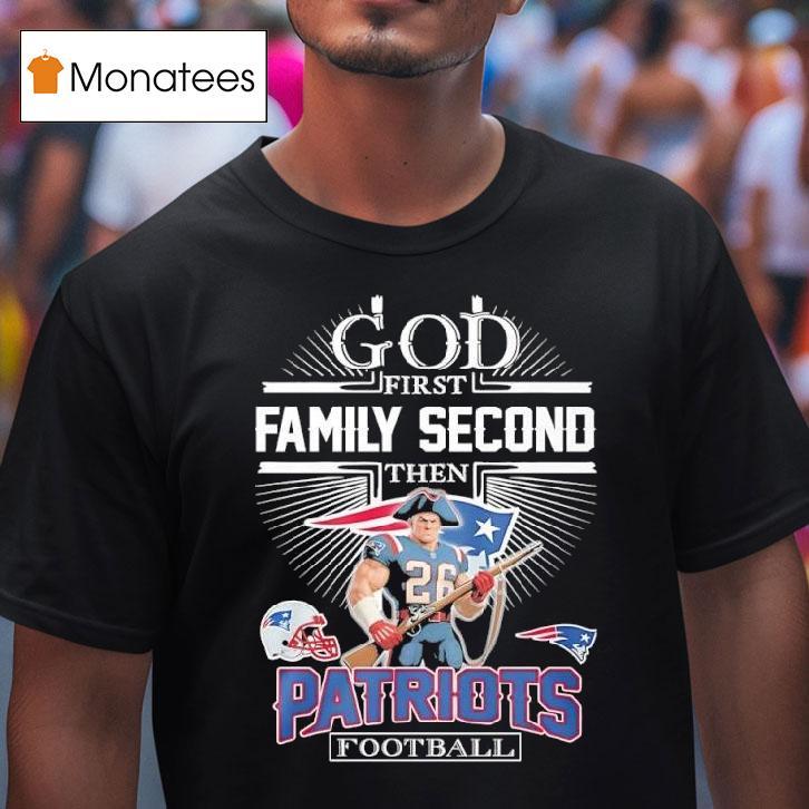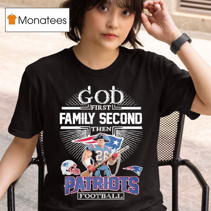 Casual chic, every day with God First Family Second Then New England Patriots Football Graphic Shirt, show your love for faith, family, and football with our God First Family Second Then New England Patriots Football Graphic Shirt. This stylish tee is perfect for game days or any day, reminding you to keep your priorities in check.