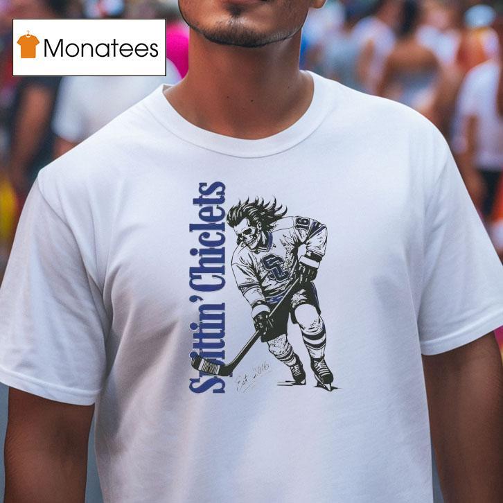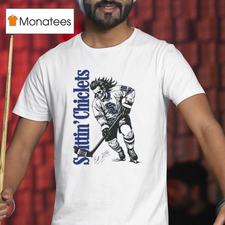 Effortless style, pure simplicity with Hockey Spittin Chiclets Skullet Vertical Shirt, get your hockey fix with the ultimate tribute to the popular podcast, Hockey Spittin Chiclets. Show off your love for the game and the iconic term “skullet” with the exclusive Skullet Vertical Shirt. A must-have for any die-hard hockey fan. Game on!
