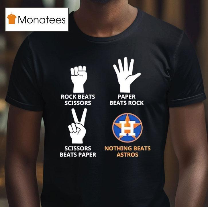 Wardrobe must-have with Houston Astros Nothing Beats Rock Beats Scissors Paper Beats Rock Scissors Beats Paper Shirt, the Houston Astros are a force to be reckoned with on the baseball field, but did you know they also have a killer sense of fashion? With their “Nothing Beats Rock Beats Scissors Paper Beats Rock Scissors Beats Paper” shirt, they dominate both the game and the style game.