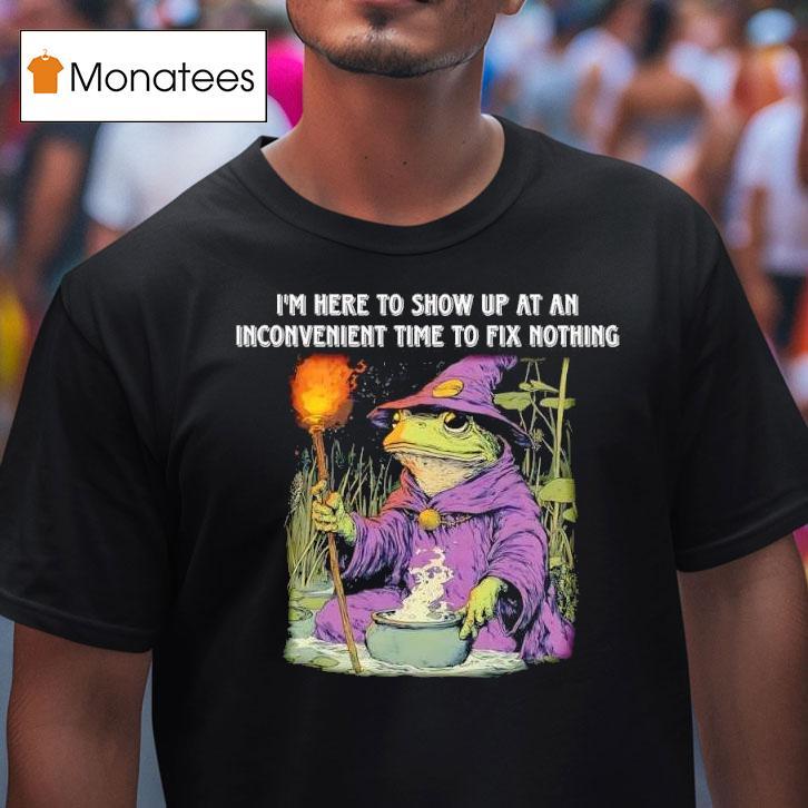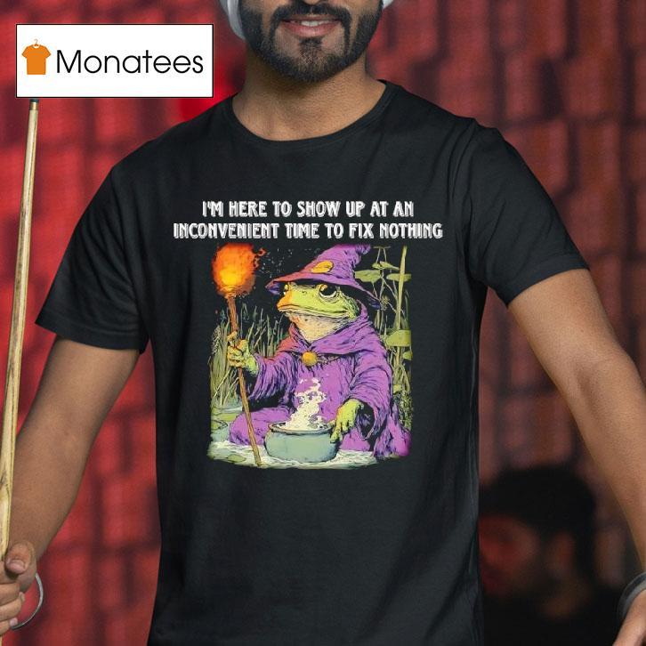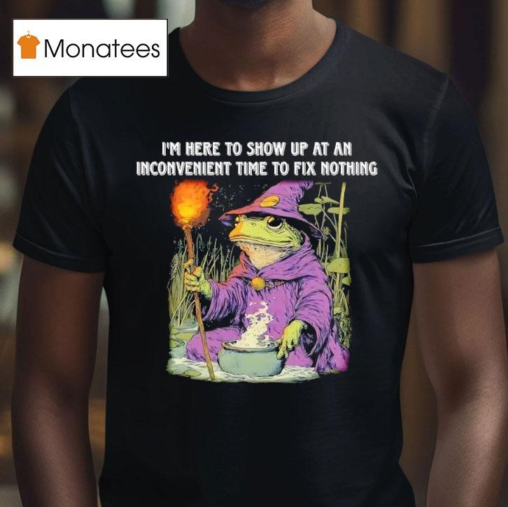Simple sophistication with I’m Here To Show Up At An Inconvenient Time To Fix Nothing Frog Wizard Shirt, “Prepare to be amazed, for I am the mysterious and mischievous Frog Wizard, ready to make an inconvenient appearance and do absolutely nothing to fix your problems. But fear not, for my charm and magical shirt will surely bring a smile to your face.”