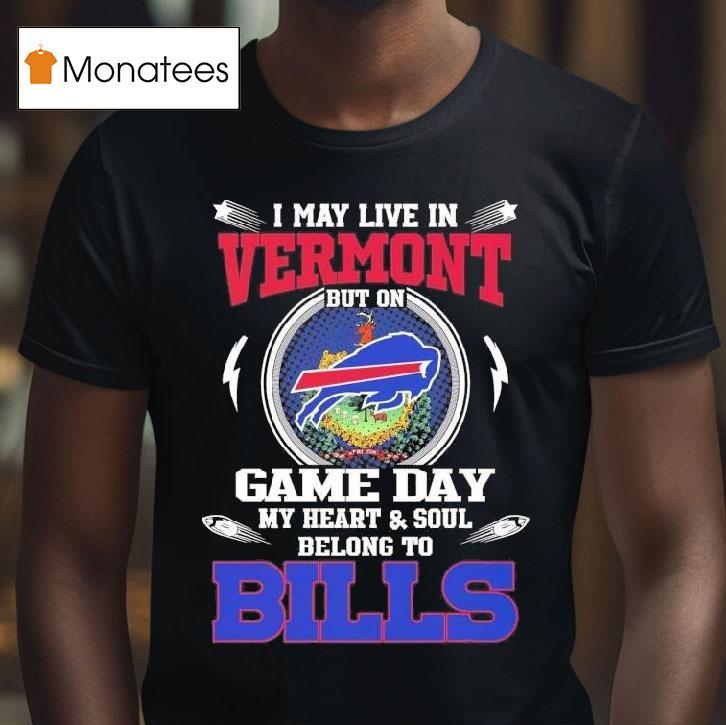 Elevate your casual wardrobe with I May Live In Vermont But On Game Day My Heart Soul Belong To Buffalo Bills 2025 Shirt, as a proud resident of Vermont, my loyalty lies with the Buffalo Bills on game day. The passion and love for my team runs deep in my heart and soul, making me a devoted fan for life. Representing with my Buffalo Bills 2025 shirt brings me pure joy.