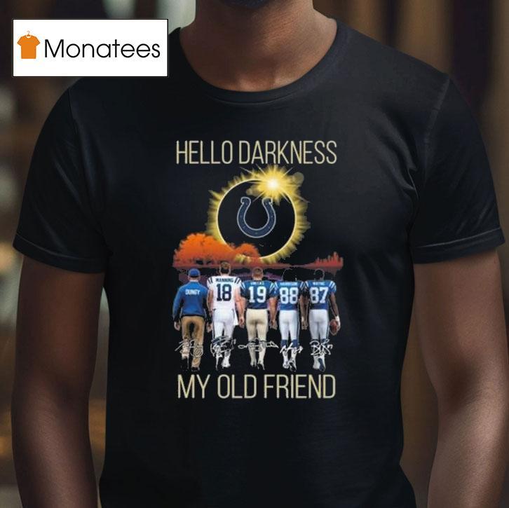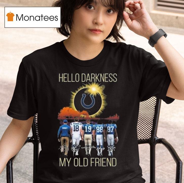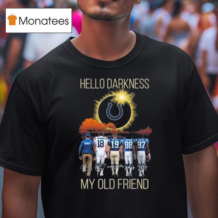 Easy-going style staple with Indianapolis Colts Hello Darkness My Old Friend Players Signatures 2025 Shirt, the Indianapolis Colts have added a touch of nostalgia to their fan gear with their new 2025 shirt featuring the famous lyrics “Hello darkness my old friend” and players’ signatures. Join the Colts as they take on the competition with style and a tribute to their loyal supporters.