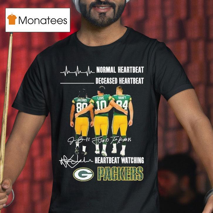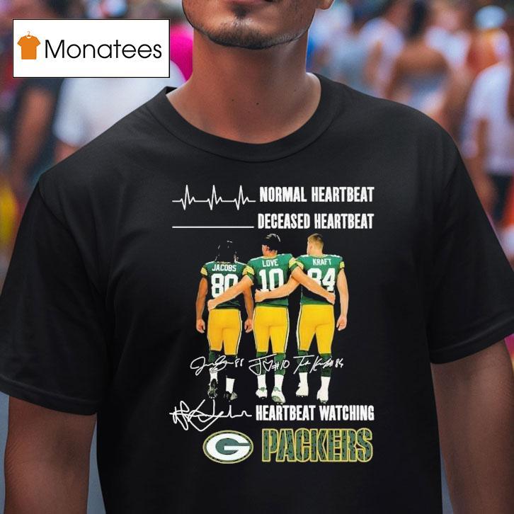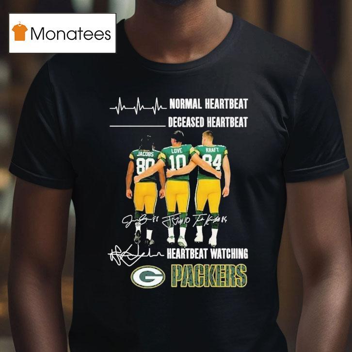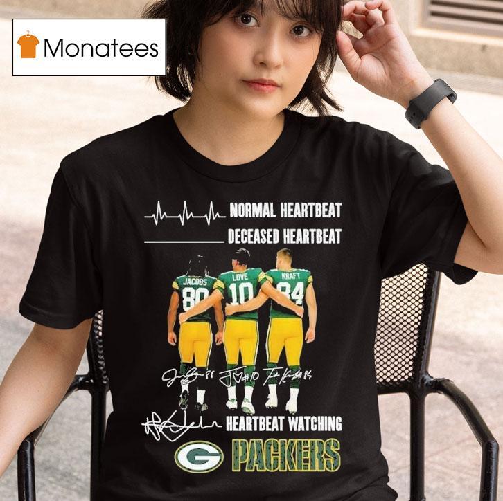 Casual sophistication with Josh Jacobs Jordan Love And Tucker Kraft Normal Heartbeat Deceased Heartbeat Heartbeat Watching Green Bay Packers Signatures Shirt, the exciting world of football has been buzzing with news of Josh Jacobs, Jordan Love and Tucker Kraft. But amidst the hype, one story stands out – the heartwarming tale of a normal heartbeat, a deceased heartbeat and a heartbeat watching as the Green Bay Packers sign their signatures on a special shirt.
