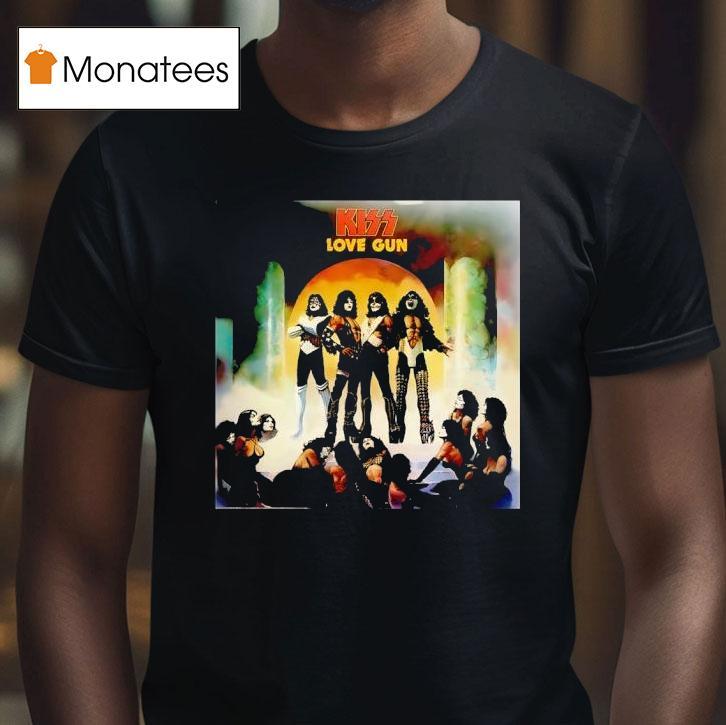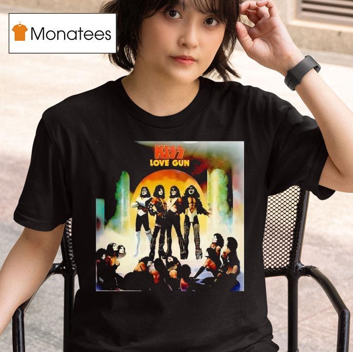 Effortless fashion flair with Kiss Love Gun Album Shirt, unlock the power of Kiss’s iconic Love Gun album with this exclusive t-shirt! Featuring the album cover’s iconic art and band member signatures, this shirt is a must-have for any fan. Show your love for the legendary band and their hit album with this one-of-a-kind piece of merchandise.