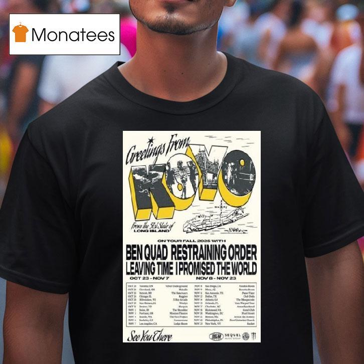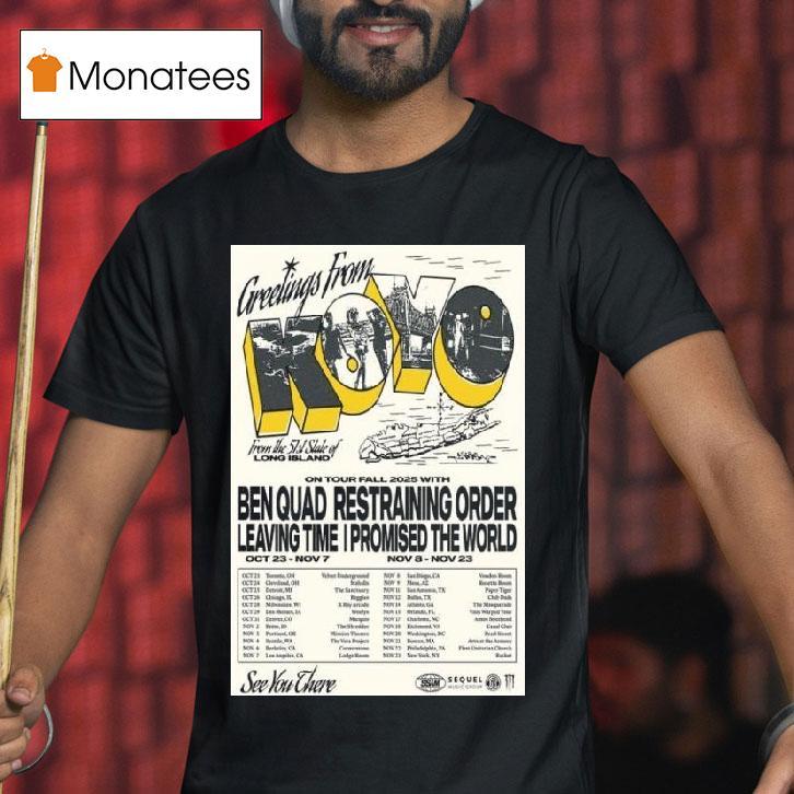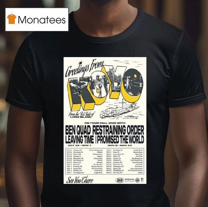 Effortless style, pure comfort with Koyo Ben Quad Restraining Order Leaving Time I Promised The World Tour Fall 2025 Shirt, koyo Ben, the rising star known for his energetic performances and catchy tunes, is facing a restraining order as he prepares to embark on his highly anticipated “Leaving Time I Promised The World” tour in Fall 2025. But fans can still show their support with his limited edition tour shirt!