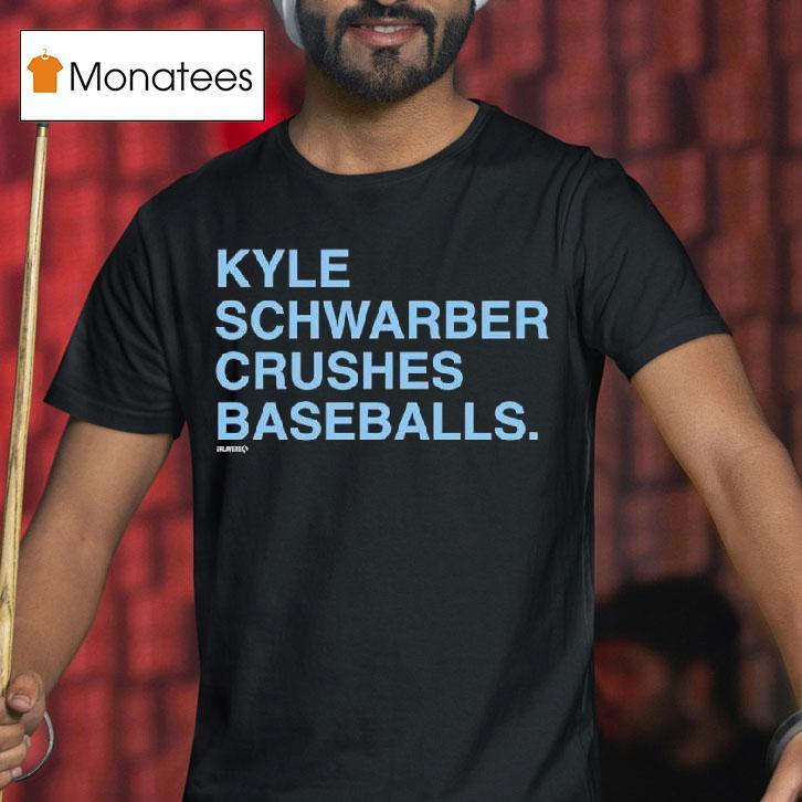 Simple sophistication with Kyle Schwarber Crushes Baseballs Shirt, attention all baseball fans! Are you ready to hit a home run with your wardrobe? Look no further than the new “Kyle Schwarber Crushes Baseballs” shirt. Featuring the talented slugger’s iconic swing, this shirt is sure to be a hit at the ballpark or on the streets. Get yours now!