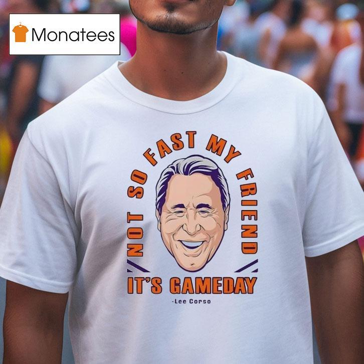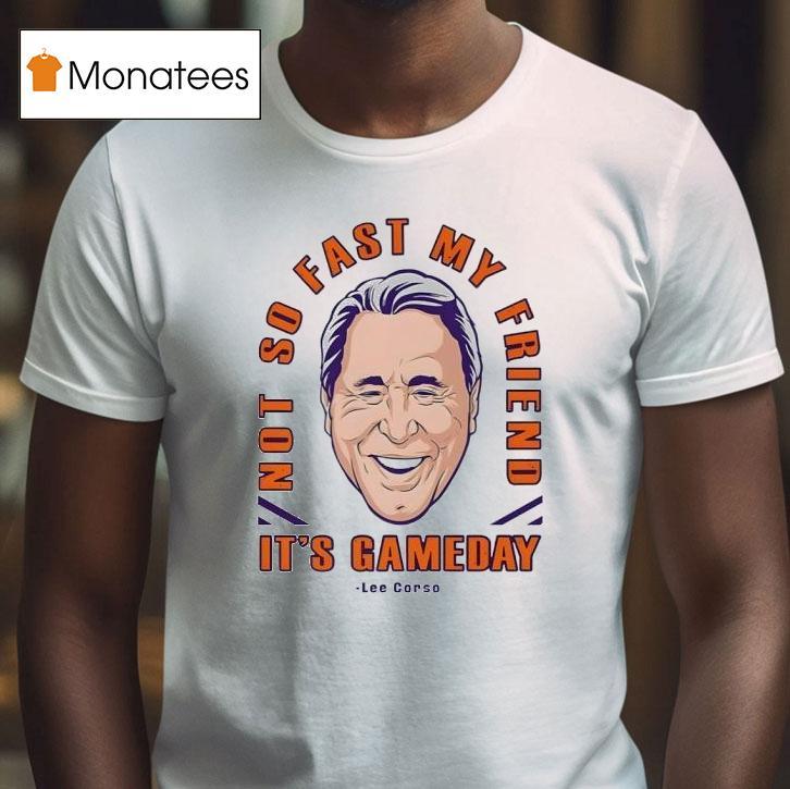 Casual chic, timeless appeal with Lee Corso Not So Fast My Friend It’s Gameday Shirt, as the countdown to kickoff begins, one name immediately comes to mind for any college football fan: Lee Corso. And with his iconic catchphrase “Not so fast, my friend,” emblazoned on this Gameday shirt, there’s no doubt it’s game time. Get ready to cheer on your team in style.