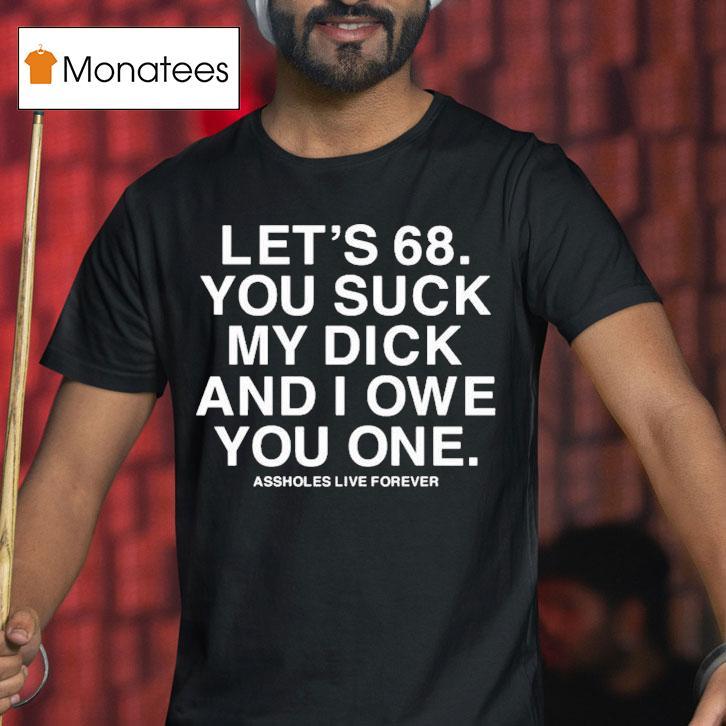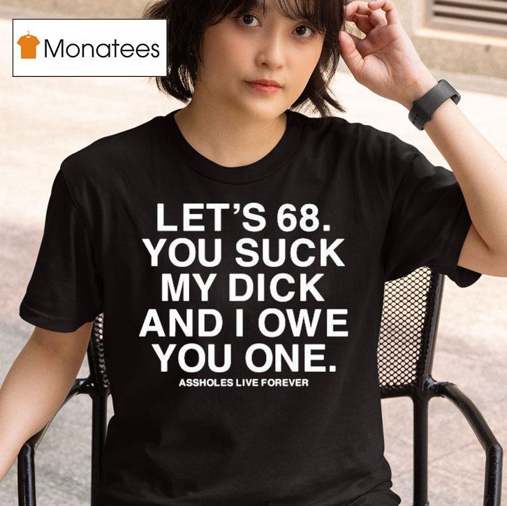 Classic tee, modern comfort with Let’s 68 You Suck My Dick And I Owe You One Shirt, are you ready to spice up your wardrobe with some humor and sass? Look no further than our “Let’s 68 You Suck My Dick And I Owe You One” shirt! Perfect for a night out with friends or a playful gift for that special someone. Get yours now!