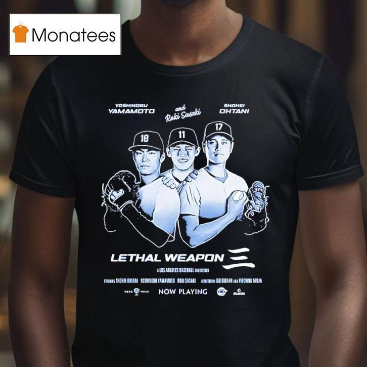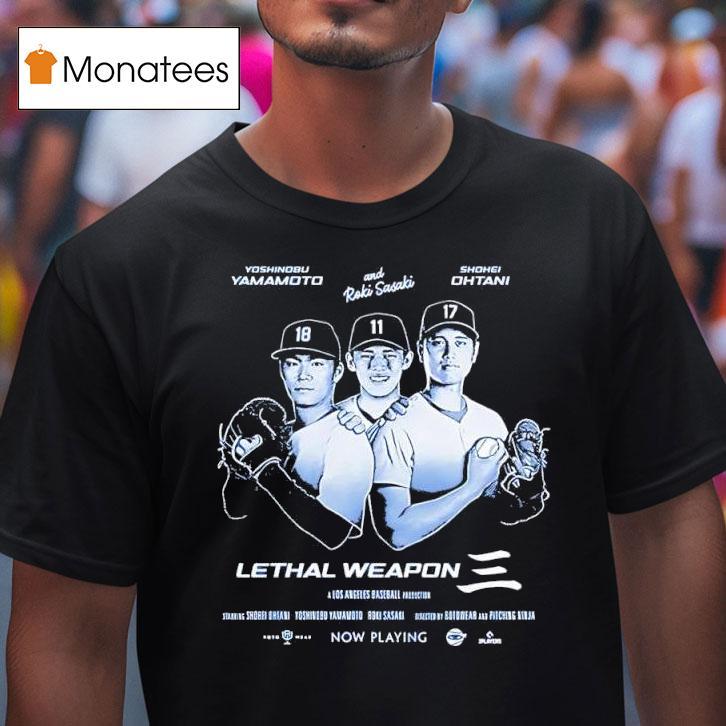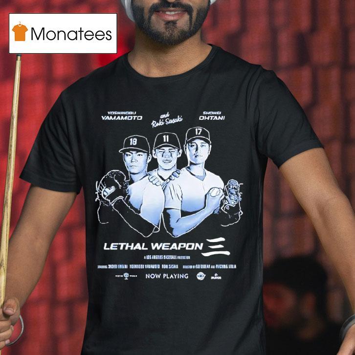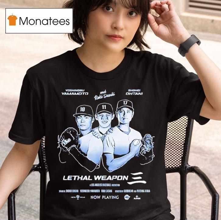 Elevate your casual wardrobe with Lethal Weapon Shohei Ohtani Yoshinobu Yamamoto Roki Sasaki Los Angeles Baseball Production Shirt, get ready for the ultimate lethal weapon in the world of baseball. With incredible talent from players like Shohei Ohtani, Yoshinobu Yamamoto, and Roki Sasaki, Los Angeles is set to dominate the field. And now, you can show your support with the new production shirt. Let’s play ball!