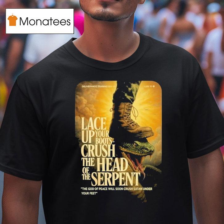 Versatile fashion at its best with Lifeline Tnt Deliverance Lace Up Your Boots Crush The Head Of The Serpent The God Of Peace Will Soon Crush Satan Under Your Feet Shirt, are you ready to lace up your boots and join the fight against evil? With Lifeline Tnt Deliverance’s “Crush the Head of the Serpent” shirt, you can show your determination to defeat the forces of darkness. Let the God of Peace empower you to crush Satan under your feet.