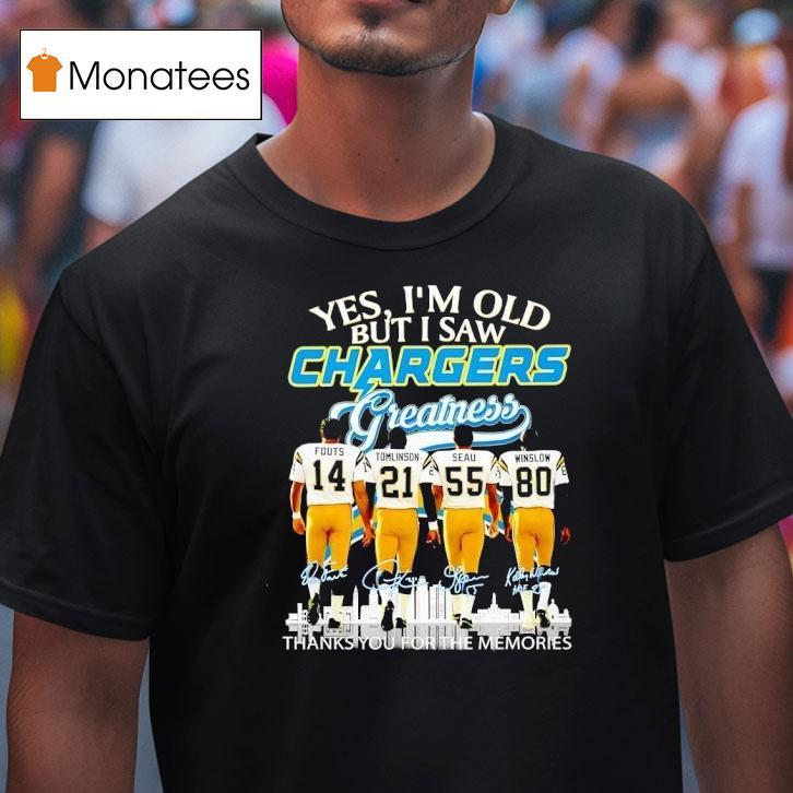 Casual flair, all occasions with Los Angeles Chargers Yes I’m Old But I Saw Greatness Thank You For The Memories Signature Shirt, “Remembering the glory days of the Los Angeles Chargers, with their star-studded roster and electrifying performances, brings a sense of nostalgia to many fans. Relive the memories with our signature shirt, a tribute to the greatness that once graced the football field. Yes, we may be old, but we witnessed greatness.”