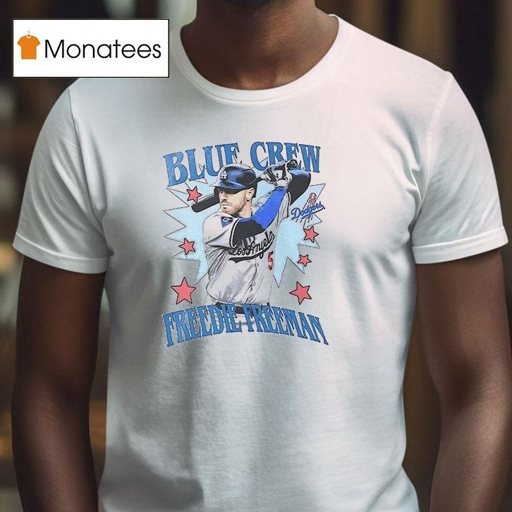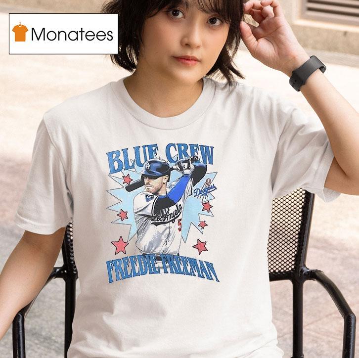 Simple sophistication, all day with Los Angeles Dodgers Freedie Freeman Blue Crew Graphic Shirt, get ready to hit a home run with the Los Angeles Dodgers Freedie Freeman Blue Crew Graphic Shirt! Show off your love for the Dodgers and their star player with this stylish and comfortable shirt. Perfect for game day or any day, this shirt is a must-have for any Dodgers fan.