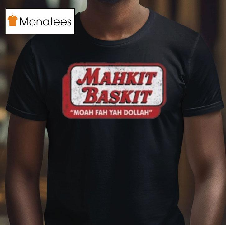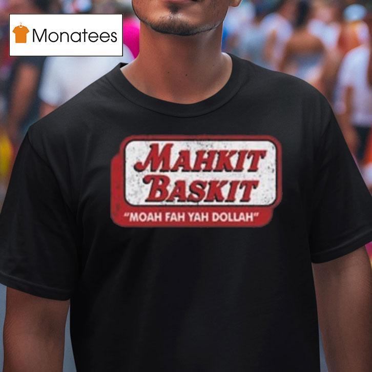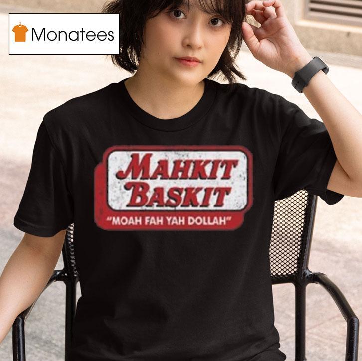 Casual chic, timeless appeal with Mahkit Baskit Moah Fah Yah Dollah Shirt, “Looking for a unique and bold addition to your wardrobe? Look no further than the Mahkit Baskit Moah Fah Yah Dollah Shirt! This eye-catching piece features vibrant colors and a catchy phrase, making it a must-have for any fashion-forward individual.”