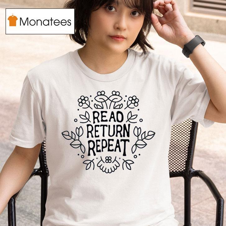 Classic look, contemporary feel with Marie Moreau Read Return Repeat Shirt, “Introducing the must-have shirt for literature lovers: the Marie Moreau Read Return Repeat shirt. Featuring a stylized design of the iconic author’s name, this shirt is perfect for bookworms who can’t get enough of her timeless stories. Get yours now and wear your love for literature proudly.”