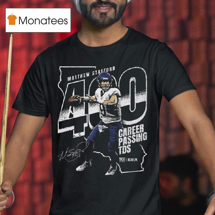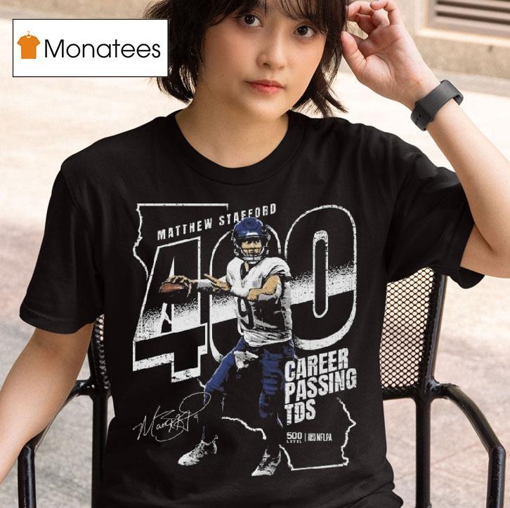 Simple sophistication with Matthew Stafford Los Angeles R 400 Club Signature Shirt, the Los Angeles Rams have acquired star quarterback Matthew Stafford, adding strength and experience to their roster. Fans can now commemorate this momentous occasion with the new R 400 Club Signature Shirt featuring Stafford’s name and number. Don’t miss out on this limited edition shirt and show your support for the Rams!