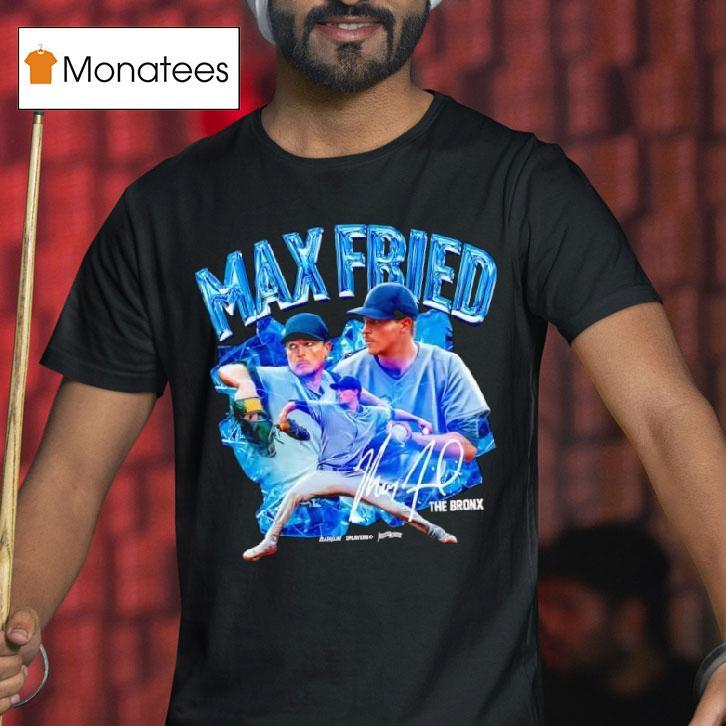 Essential wardrobe staple with Max Fried The Bronx Signature Graphic Shirt, introducing the ultimate fan gear for Max Fried enthusiasts – the Bronx Signature Graphic Shirt. Show off your love for the talented pitcher with this must-have shirt featuring a bold graphic design inspired by the iconic Bronx landscape. Perfect for game days or everyday wear.