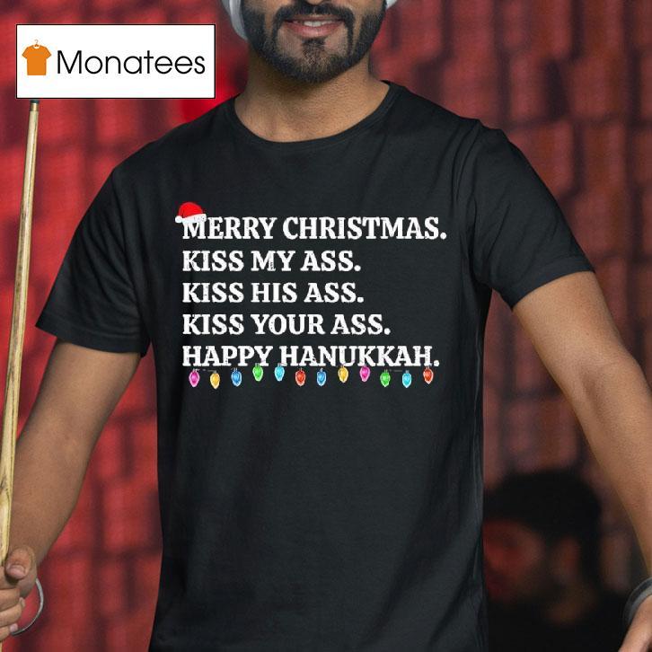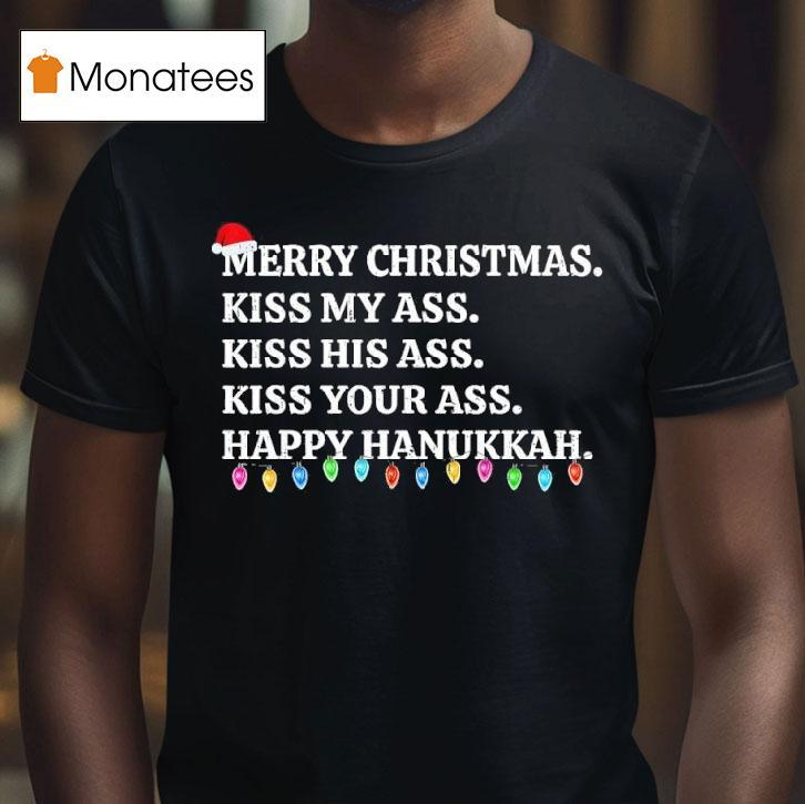 Everyday ease, endless style with Merry Christmas Kiss My Ass Kiss His Ass Kiss Your Ass Happy Hanukkah Shirt, get ready to spread some holiday cheer and a little sass with the Merry Christmas Kiss My Ass Kiss His Ass Kiss Your Ass Happy Hanukkah shirt. This festive and bold shirt is the perfect way to celebrate the season with a playful attitude.