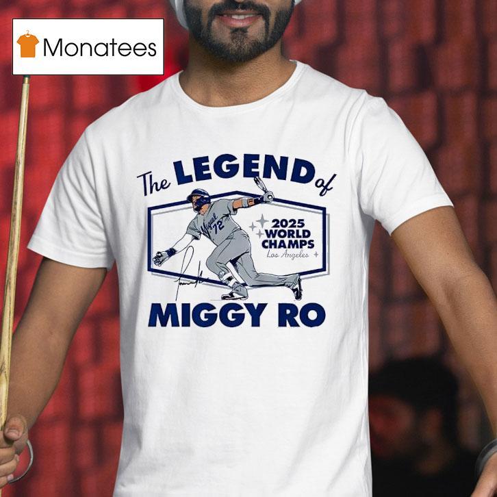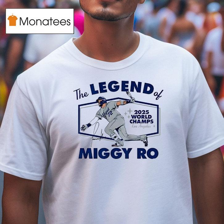 Easy-going style staple with Miguel Rojas Los Angeles Dodgers The Legend Of Miggy Ro Shirt, miguel Rojas may be known as the utility player for the Los Angeles Dodgers, but his impact goes far beyond the field. His dedication, skill, and leadership have earned him the title of “The Legend of Miggy Ro” and now you can show your support with the official Miggy Ro Shirt.