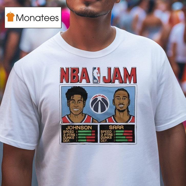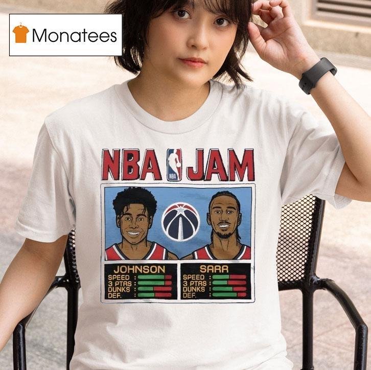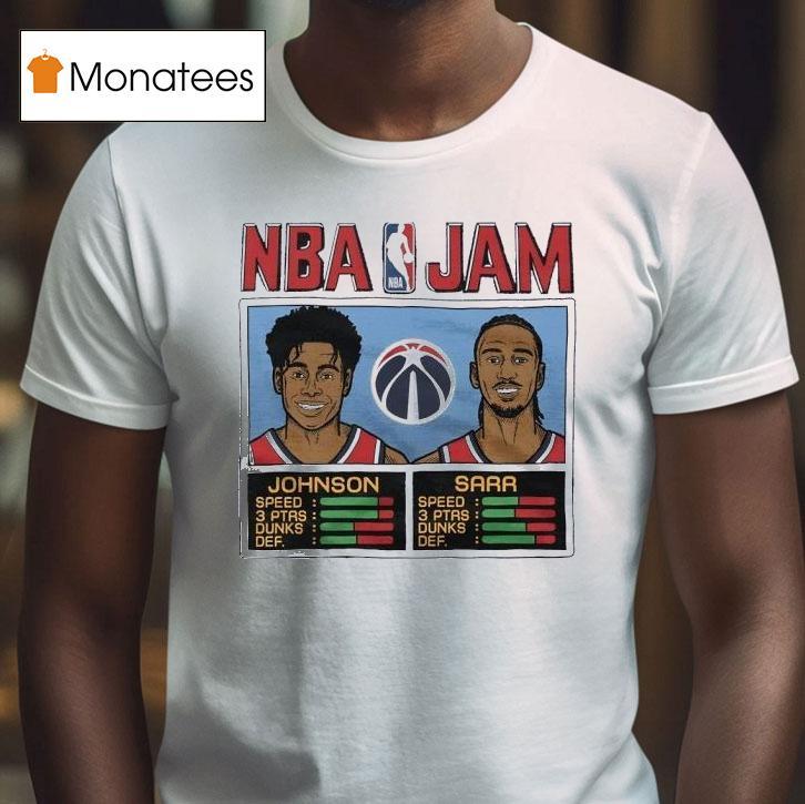 Elevate your casual look with Nba Jam Wizards Johnson And Alex Sarr Players Shirt, step onto the court with the iconic Wizards Johnson and Alex Sarr players in the NBA Jam branded shirt. Show off your love for the classic video game and these legendary players while representing your team’s colors. Grab your jersey and let the game begin!