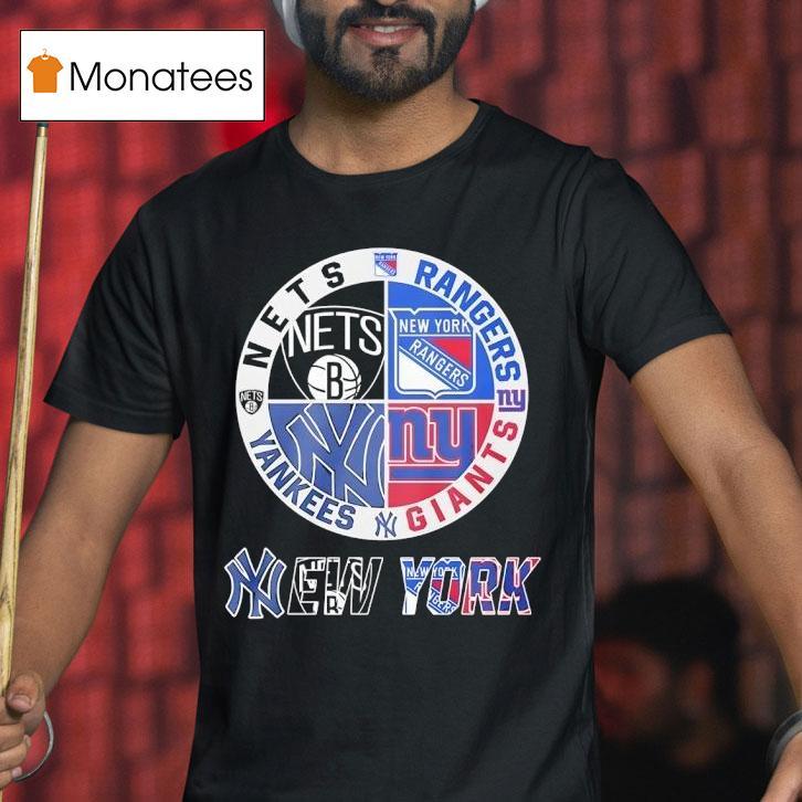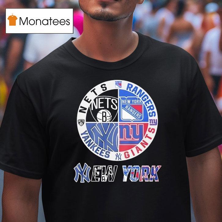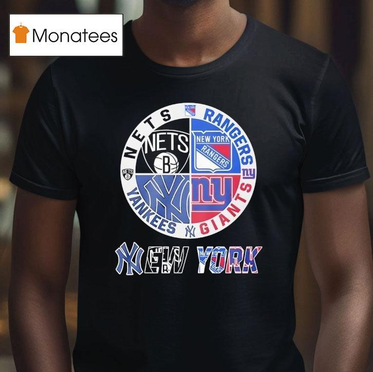 Your fashion canvas with New York Giants New York Yankees York Nets New York Rangers Mashup Logo Shirt, get ready to show off your favorite New York sports teams with a new, one-of-a-kind mashup logo shirt! Featuring the iconic symbols of the New York Giants, New York Yankees, York Nets, and New York Rangers, this shirt is a must-have for any true fan.