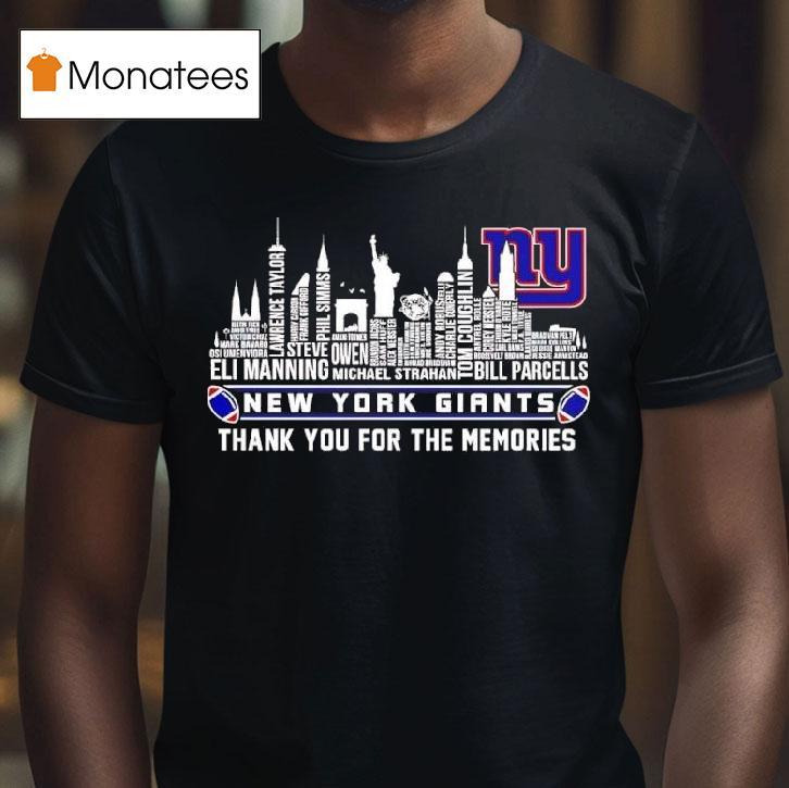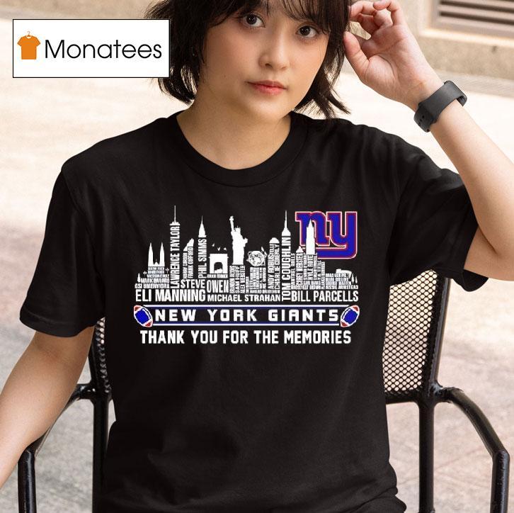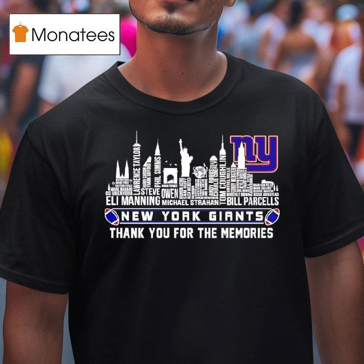Wardrobe must-have with New York Giants Thank You For The Memories City Skyline Graphic Logo Shirt, celebrate the rich history and unforgettable moments of the New York Giants with the stunning City Skyline Graphic Logo Shirt. This tribute to the beloved team features their iconic logo against the breathtaking backdrop of the city, making it a must-have for any die-hard Giants fan. Thank you for the memories, Big Blue.