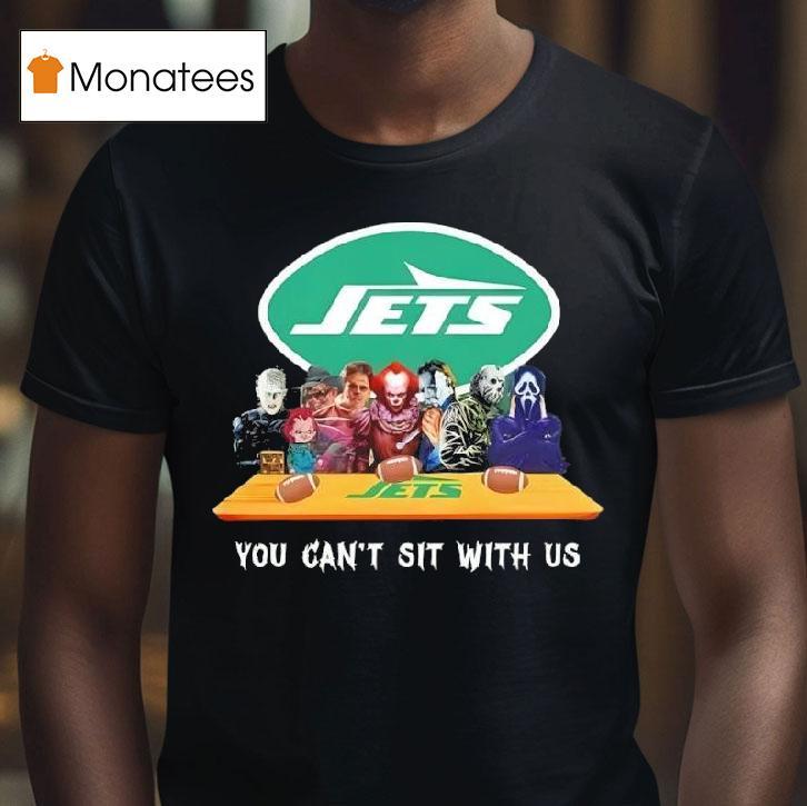 Everyday comfort redefined with New York Jets Horror Movies Halloween You Can’t Sit With Us Shirt, get ready to scream, because the New York Jets have teamed up with horror movies this Halloween to bring you the ultimate spooky shirt. Featuring a classic school-inspired design with a chilling twist, this “You Can’t Sit With Us” shirt is a must-have for any horror movie fanatic.
