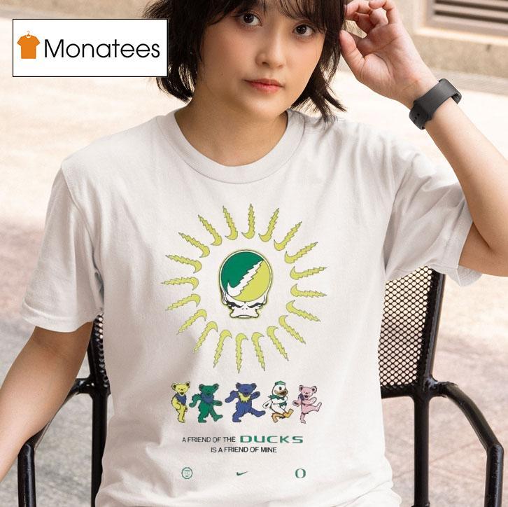 Versatile fashion at its best with Nike X Grateful Dead X Oregon Ducks Friend Of The Ducks Is A Friend Of Mine Shirt, get ready to show your love for three legendary icons with the Nike X Grateful Dead X Oregon Ducks “Friend Of The Ducks Is A Friend Of Mine” shirt. Combining the iconic Swoosh with the legendary jam band and beloved college team, this shirt is a must-have for any fan.