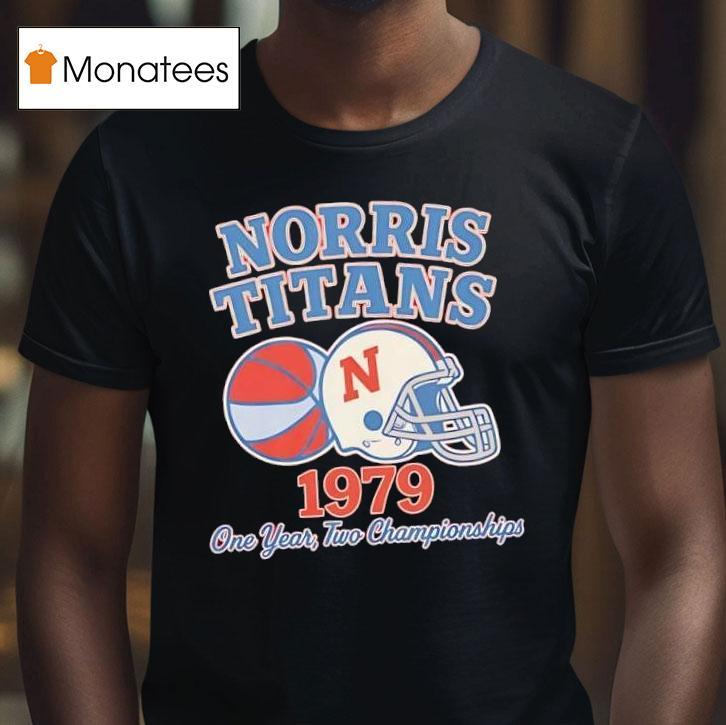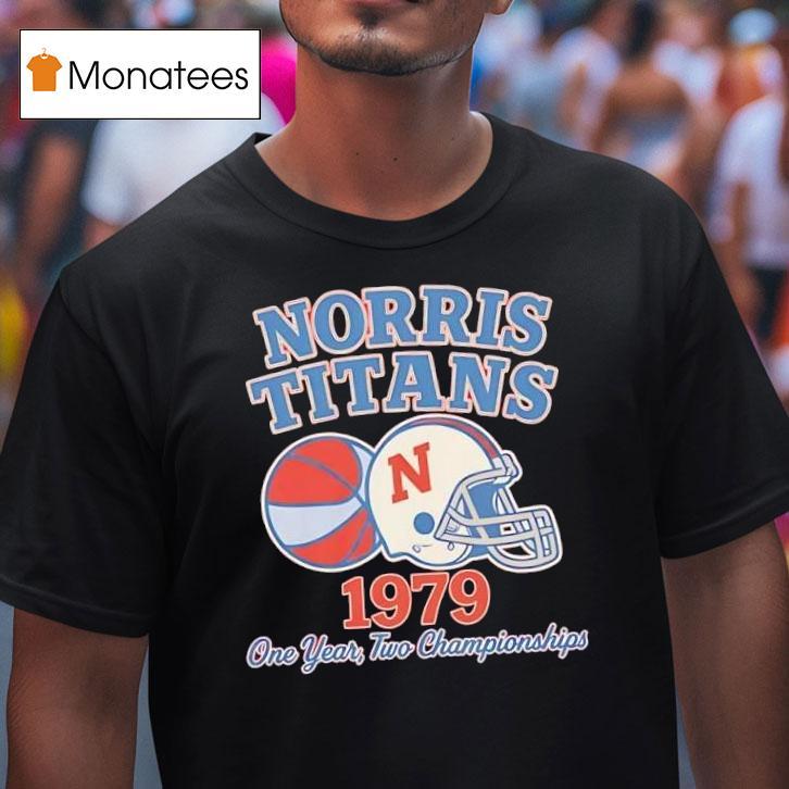 Classic charm, modern comfort with Norris Titans 1979 One Year Two Championships Helmet Logo Shirt, in 1979, the Norris Titans made history by winning not just one, but two championships in a single year. To commemorate this monumental achievement, the team released a limited edition helmet logo shirt, symbolizing their dominance on the field. Relive the glory days with this iconic piece of merchandise.