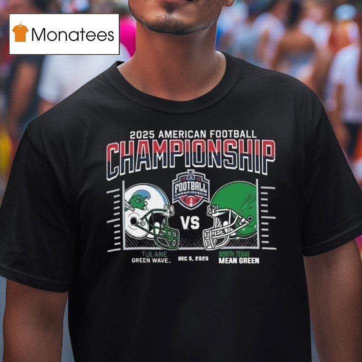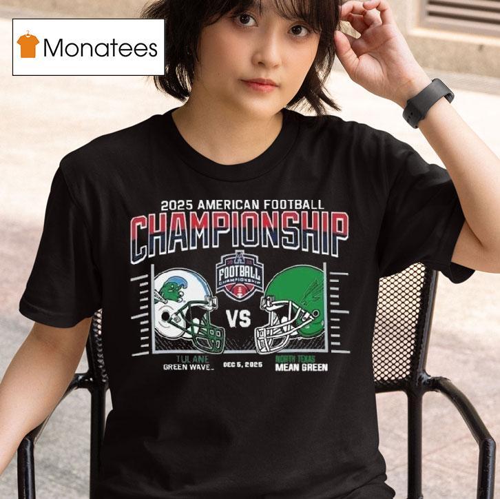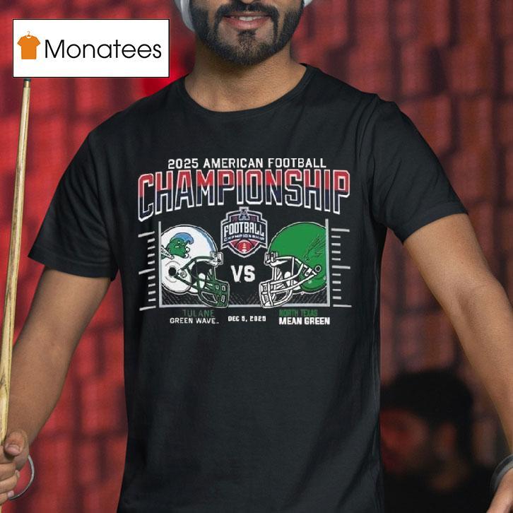 Versatile fashion, timeless appeal with North Texas Mean Green Vs Tulane Green Wave 2025 American Football Championship Game Helmet Shirt, get ready for an epic showdown as the North Texas Mean Green take on the Tulane Green Wave in the 2025 American Football Championship Game! Show your support for your favorite team with the official helmet shirt that’s sure to give you a winning edge. Let the battle begin!